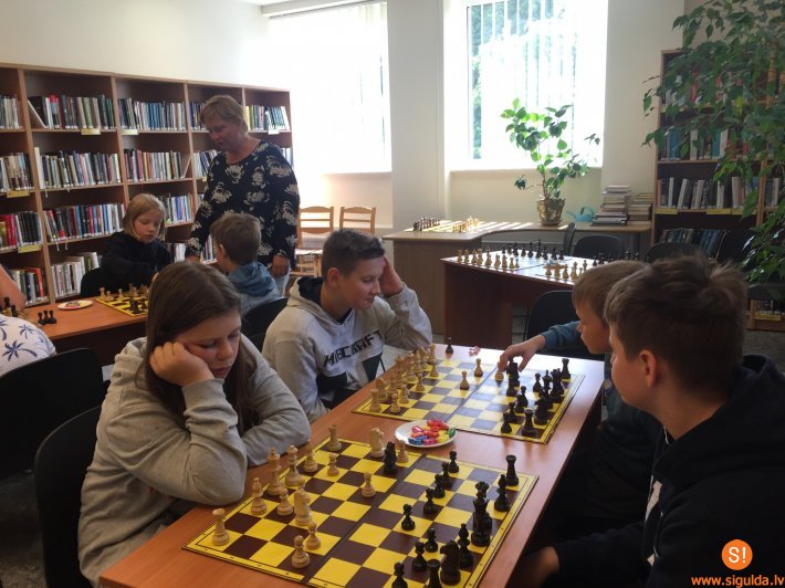 Allažu bibliotēkas mājīgajās telpās tika salikti 6 šaha komplekti, un sākās saruna par to, kā pa šaha galdiņu soļo karalis un tornis, kas padomā zirdziņam un ko spēj mazais bandinieks. Klausītāju vidū bija gan skolas vecuma bērni, gan vecāka gada gājuma allažnieki.