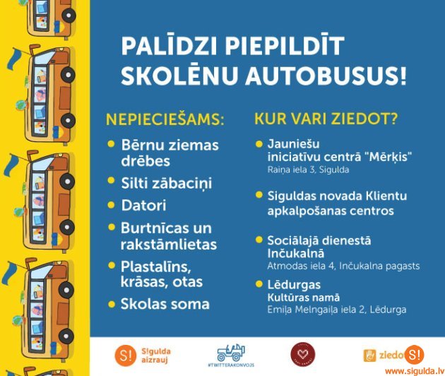 Labdarības organizācija “Agendum” nodrošina autobusu Siguldas novada pašvaldībai, lai kopīgiem spēkiem mēs to piepildītu ar nepieciešamajām precēm, kas decembrī tiks nogādātas uz karā cietušo Mikolajivas apgabalu.