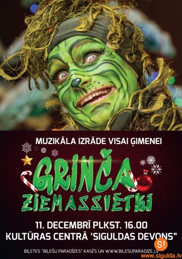 11. decembrī plkst. 16.00 kultūras centrā “Siguldas devons” bērnus priecēs krāšņš, muzikāls svētku stāsts visai ģimenei “Grinča Ziemassvētki” – sirsnīga un muzikāla pasaka divās daļās, kurā netrūks jautrības un piedzīvojumu. Izrādes “Grinča Ziemassvētki” papildseanss notiks tajā pašā dienā, 11. decembrī, plkst. 13.00