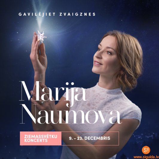 17. decembrī plkst. 15.00 Krimuldas Evaņģēliski luteriskajā baznīcā izskanēs Marijas Naumovas Ziemassvētku koncerts “Gavilējiet zvaigznes”. Šis pirmssvētku koncerts ir kļuvis par dziedātājas Marijas Naumovas tradīciju, kad ziemīgi dziesmotā un liegā tikšanās ar skatītāju notiek Latvijas kultūras centros un dievnamos.