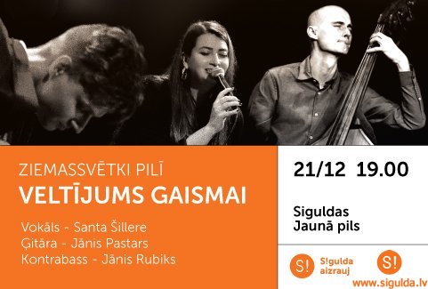 21. decembrī plkst. 19.00 Siguldas Jaunajā pilī īpašu noskaņu radīs koncerts “Ziemassvētki pilī – veltījums gaismai”. Lai spertu soli tuvāk gada sirsnīgākajiem, siltākajiem un cerību pilnākajiem svētkiem, aicinām ikvienu klausītāju būt kopā! Koncertā uzstāsies Santa Šillere (vokāls), Jānis Pastars (ģitāra) un Jānis Rubiks (kontrabass).