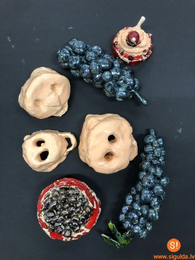 Skolotājas Lienes Mackus, Anetes Kalniņas un Ērikas Zuteres vadībā bērni zīmējuši, gleznojuši un mālā un plastilīnā atspoguļojuši savu priekšsstatu par svētku našķiem. Atbilstoši sezonai dominē Ziemssvētku gardumi, bet ne tikai.