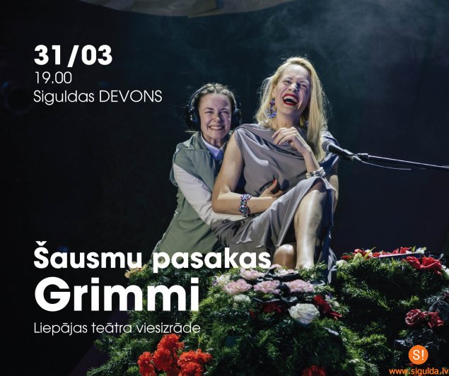 31. martā plkst. 19.00 kultūras centrā “Siguldas devons” ar titulēto un vairāku nomināciju saņēmušo izrādi “Grimmi” viesosies Liepājas teātris. “Grimmi” ir režisora Elmāra Seņkova otrā no iecerētās triloģijas izrādēm Liepājas teātrī, kas turpina jau “Šekspīrā” iesāktos estētikas meklējumus – cinisms, spēles prieks un asinis.