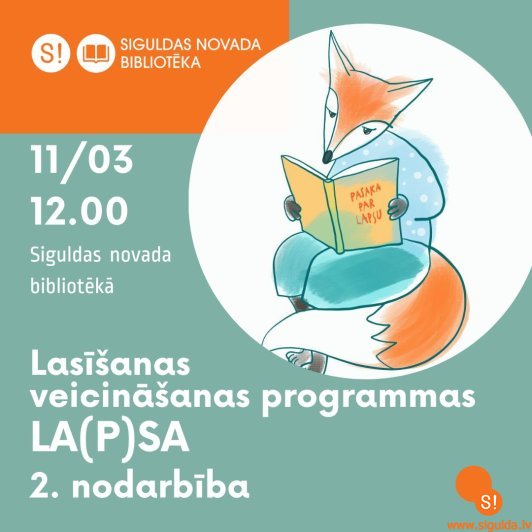 11. martā plkst. 12.00 Siguldas novada bibliotēkā notiks jau otrā lasīšanas veicināšanas programmas “La(p)sa” nodarbība.