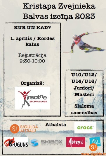 Kā jau katru gadu, īstie kalnu slēpotāji Siguldā slēpo līdz pēdējai sniega čupiņai. Un tradicionāli sezonas noslēgumā sacenšas par Kristapa Zvejnieka balvu kalnu slēpošanā. Kalnu slēpošanas sacensības visām vecuma grupām 1. aprīlī Siguldā, Kordes trasē.