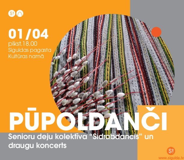 Pūpolsvētdienas priekšvakarā, 1. aprīlī, plkst. 18.00 Siguldas novada Kultūras centra senioru deju kolektīva “Sidrabdancis” aicina visus tautas skatuviskās dejas mīļotājus uz koncertu Siguldas pagasta Kultūras namā.