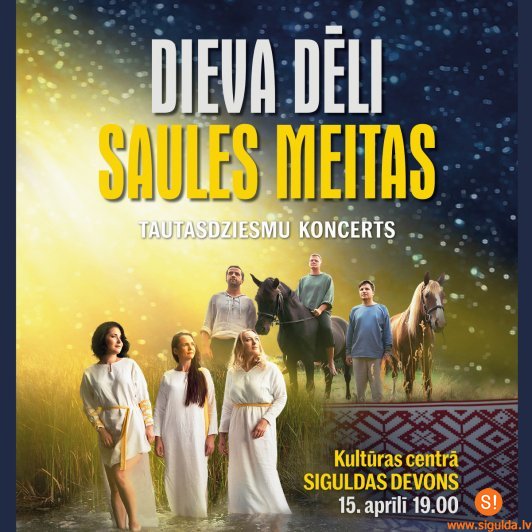 15. aprīlī plkst. 19.00 kultūras centrā “Siguldas devons” izskanēs tautasdziesmu koncerts “Dieva dēli. Saules meitas”. Pēc tumsas vienmēr nāk gaisma! Ar jaunu, cerīgu un pavasarīgu enerģiju “Producentu grupa 7” un kultūras centrs “Siguldas devons” aicina uz tautasdziesmu programmu “Dieva dēli. Saules meitas”.
