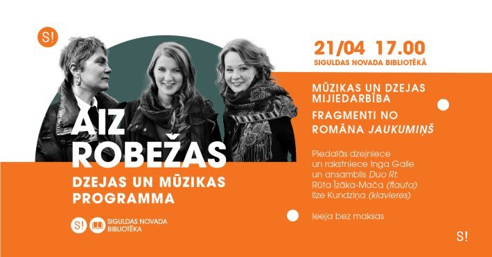 21. aprīlī plkst. 16.30 Siguldas novada bibliotēkā norisināsies pasākums “Laiks lasīšanai”. Pasākumā bibliotēka atskatīsies uz iepriekšējo gadu un godinās čaklākos lasītājus un sadarbības partnerus. Pasākuma īpašie viesi – rakstniece un dzejniece Inga Gaile un kameransamblis “Duo RI” ar dzejas un mūzikas programmu “Aiz robežas” (programma sāksies plkst. 17.00). Programmā izskanēs mūzikas un dzejas mijiedarbība, kā arī fragmenti no Ingas Gailes jaunā romāna “Jaukumiņš”.