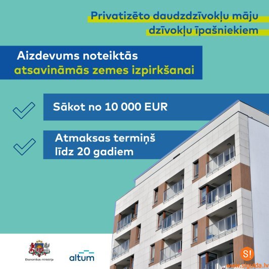 AS “Attīstības finanšu institūcija “Altum”” (“Altum”) sākuši piedāvāt aizdevumu daudzdzīvokļu māju dzīvokļu īpašniekiem noteiktās atsavināmās zemes izpirkšanai jeb atsavināšanas cenas samaksai.