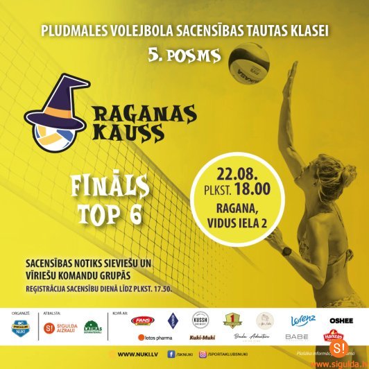 Plkst.18.00, Raganā, startēs “Raganas kauss” sacensību fināla posms, kur piedalīsies sešas labākās komandas sieviešu un vīriešu grupās pēc aizvadīto posmu reitinga. Dalībnieki cīnīsies par sacensību atbalstītāju sarūpētajām balvām un godalgoto vietu medaļām.