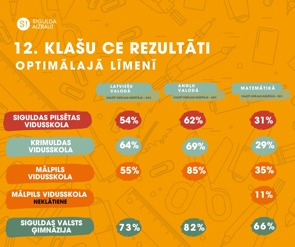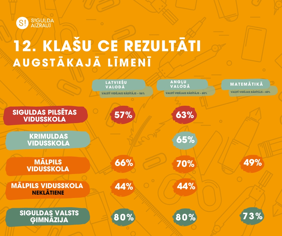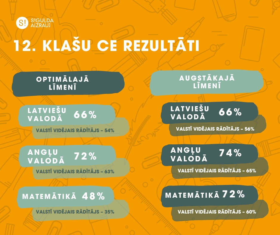 Siguldas novada skolu 12. klašu skolēni augstākus rezultātus nekā valstī vidēji uzrādīja: