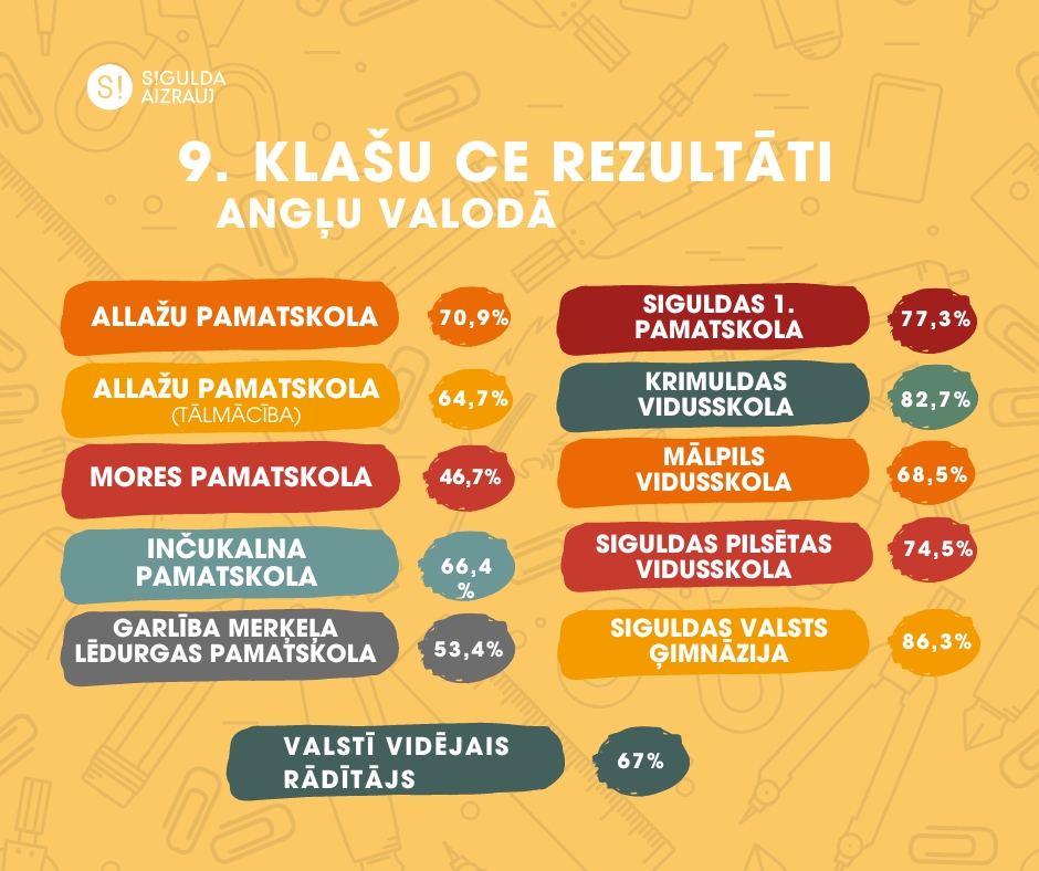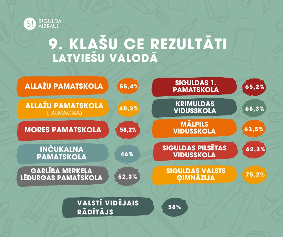 Siguldas novada skolu 9. klašu skolēni augstāku rezultātu, nekā valstī vidēji uzrādīja: