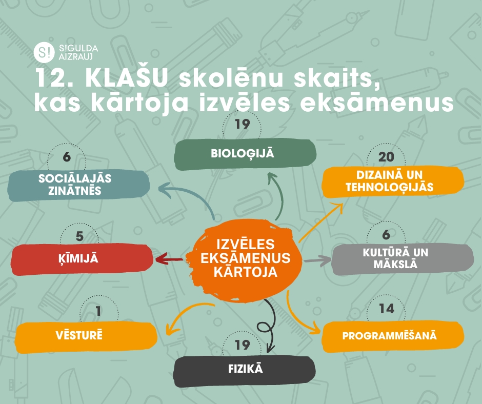 - kultūrā un mākslā – 67% no kopējā skolēnu skaita, kas kārtoja eksāmenu (6),valstī vidēji 46% un vairāk;