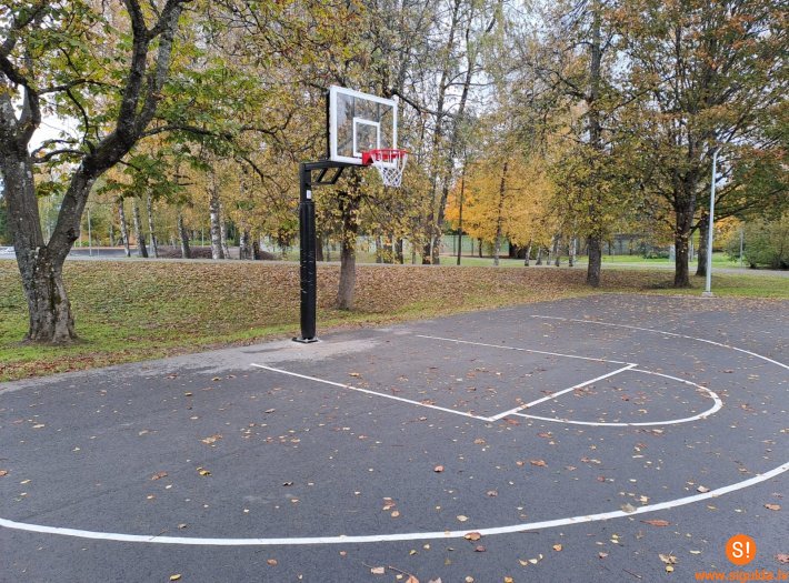 Siguldas novada pašvaldības Sporta nodaļas speciālisti Raiņa parkā, Siguldā, uzstādījuši jaunu basketbola grozu bērnu basketbola laukumā.