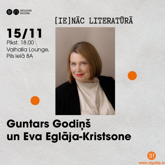 15. novembrī plkst. 18.00 kafejnīcā “Valhalla Lounge” (Siguldā, Pils ielā 8 A) notiks cikla “[Ie]nāc literatūrā” novembra saruna. Uz to Guntars Godiņš ir aicinājis literatūrzinātnieci Evu Eglāju-Kristsoni.