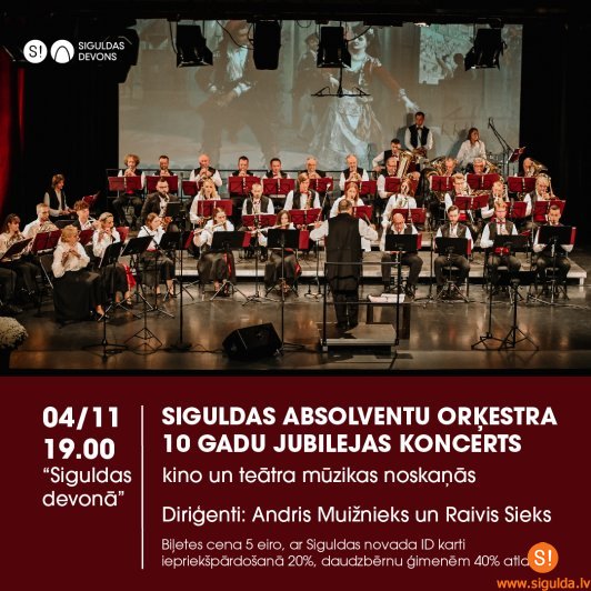 Siguldas Absolventu orķestris 4. novembrī savu 10 gadu jubilejas koncertu svinēs kino un teātra mūzikas noskaņās. Koncerta sākums plkst. 19.00 kultūras centrā “Siguldas devons”.