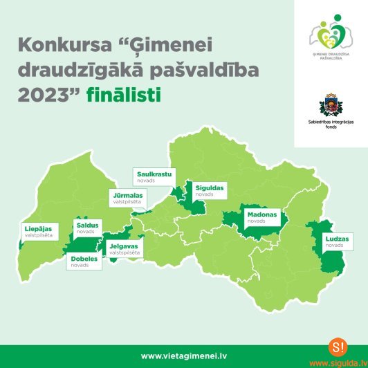 Apkopoti konkursa “Ģimenei draudzīgākā pašvaldība 2023” pēdējās kārtas rezultāti ar katrā plānošanas reģionā visaugstāk novērtētajām pašvaldībām, kas atzītas kā ģimenēm draudzīgākās. Finālistu vidū esam arī mēs – Siguldas novada pašvaldība. Finālisti cīnīsies par naudas balvu, kuru izmantot ģimeniskas vides uzlabošanai savā pašvaldībā, un uzvarētāji tiks izziņoti 12. decembrī īpašā apbalvošanas ceremonijā.