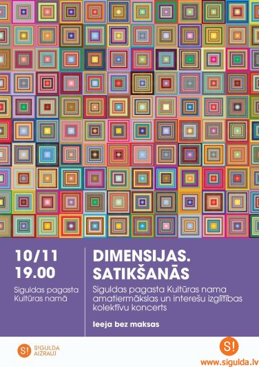 Koncerta nosaukums “Dimensijas. Satikšanās” atspoguļo Kultūras nama misiju un būtību – sniegt iespēju izpausties un sevi realizēt visdažādākajos veidos un formās. Dažādi vecumi, intereses un darbības laiks, bet divas kopīgas lietas – aizrautība un satikšanās vieta. Jau piecdesmito sezonu par satikšanās vietu kalpo Siguldas pagasta Kultūras nams.