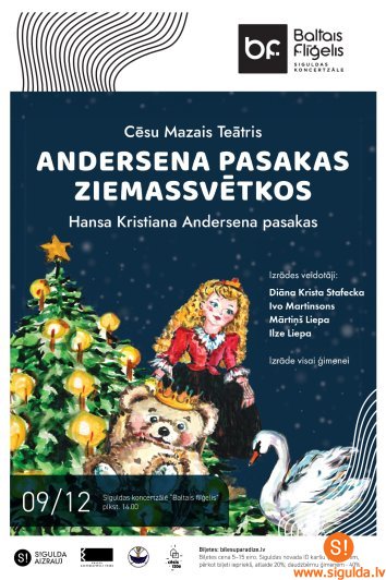 Sestdien, 9. decembrī, plkst. 14.00 koncertzālē “Baltais flīģelis” būs iespēja noskatīties uzvedumu visai ģimenei “Andersena pasakas Ziemassvētkos”.