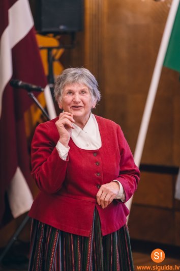 “Katrai medaļai ir divas puses. Dzīves laikā esmu saņēmusi vairākus apbalvojumus, 2001. gadā Rīgas Latviešu biedrības namā man pasniedza Lielās folkloras gada balvu. Katrs šāds apbalvojums uzliek lielu pienākumu un atbildību. Toreiz nodomāju, beidzot būs miers, taču nē! Par Siguldas novada pašvaldības domes apbalvojumu jūtos aizkustināta un vienlaikus satraukta, jo pazīstu daudzus, kas Goda novadnieka titulu pelnījuši vairāk nekā es. Man ir ļoti paveicies, ka vienmēr esmu varējusi baudīt labus cilvēkus sev apkārt. Straume mani dzīvē ir ienesusi kā akmentiņu starp dižiem akmeņiem,” stāstot par sevi, pieticīga ir apbalvojuma “Siguldas novada Goda novadnieks” saņēmēja L. Krastiņa.