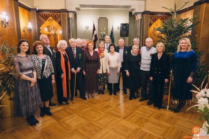 Turpinot vienu no saviļņojošākajām tradīcijām, Siguldas Jaunajā pilī Siguldas novada pašvaldības domes priekšsēdētāja Līga Sausiņa un Dzimtsarakstu nodaļas kolēģi svinīgi uzņēma Siguldas novada pārus, kuri šogad svin Zelta kāzas – laulību pusgadsimta garumā.