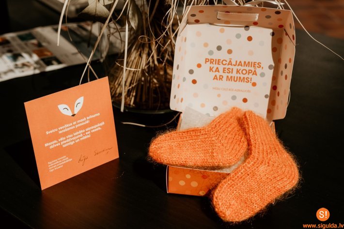 2024. gadā jaundzimušo novadnieku ģimenes, reģistrējot savu mazuli Siguldas novada Dzimtsarakstu nodaļā, saņems dāvanā Siguldas novada mākslinieces un rokdarbnieces Intas Ausekles adītu zeķu pāri, kas iesaiņots īpaši dizainētā kastītē.