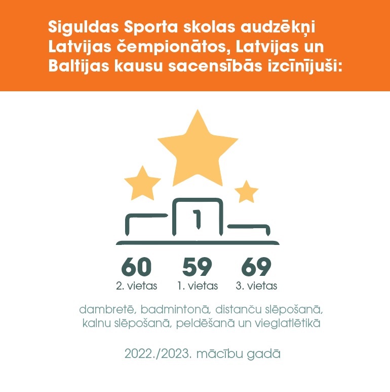 Arī novada jaunieši aizvadītajā gadā uzrādījuši augstus sasniegumus dažādos sporta veidos novada, Latvijas un starptautiska mēroga sacensībās. Siguldas Sporta skolas audzēkņi 2022./2023. mācību gadā Latvijas čempionātos, Latvijas kausu un Baltijas kausu sacensībās ir izcīnījuši 59 1. vietas, 60 2. vietas un 69 3. vietas.