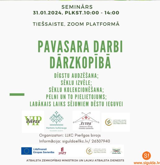 Laikā, kad zemi klāj sniega sega, čaklākie jau gatavojas pavasarim. Lai ikviens interesents būtu gatavs jaunajai sezonai, 31. janvārī iespējams piedalīties pieredzējušu lektoru vadītā tiešsaistes seminārā par aktuālajiem pavasara darbiem dārzā.