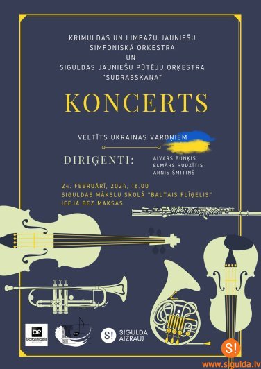 Sestdien, 24. februārī, plkst. 16.00 Siguldas Mākslu skolā “Baltais flīģelis” notiks orķestru sadraudzības koncerts, kas būs veltīts Ukrainas varoņiem.