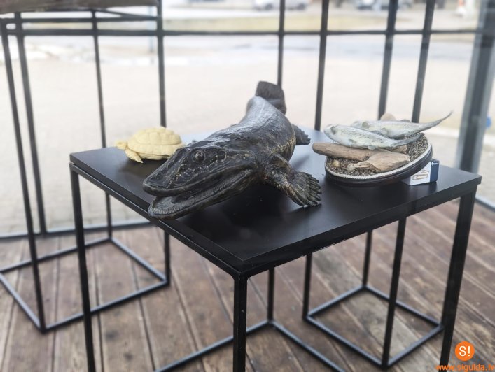 Izstādē iespējams uzzināt vairāk par taksidermiju un aplūkot šīs amatniecības nozares darinājumus Devona perioda bruņzivs un pasaulē primitīvākā tetrapoda jeb četrkāja veidolā, kas izgatavoti, pateicoties Latvijas paleontoloģiskajos izrakumos atrastajām folisām atliekām. Vizuālie materiāli sniedz ieskatu laika periodā pirms vairāk nekā 365 miljoniem gadu. Izstādē aplūkojamas arī zivju trofejas, dzīvnieku figūriņas, tāpat var apskatīt īpašus dabas materiālu gaismekļus. Izstāde papildināta ar Sarmītes Inbergas dzeju un autores spilgtākajiem dzīves mirkļiem, kas atspoguļoti skaistāko dabas skatu fotogrāfijās.