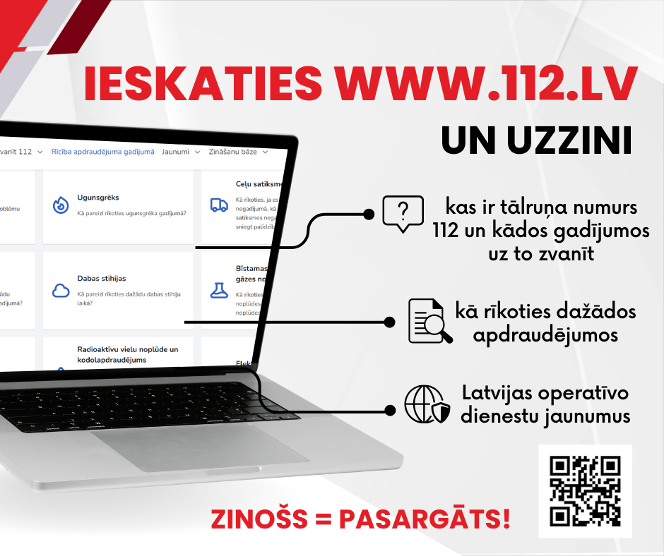 Jaunā tīmekļvietne www.112.lv – visu operatīvo dienestu drošības padomi, ieteikumi rīcībai apdraudējumos un aktualitātes vienuviet.