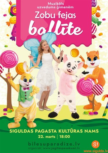 Piektdien, 22. martā, plkst.18.00 SIA “Jogitas pasākumi” aicina uz muzikālu izrādi bērniem “Zobu fejas ballīte” Siguldas pagasta Kultūras namā.