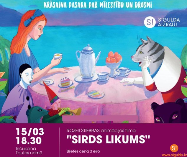 Inčukalna Tautas namā 15. martā plkst. 18.30 varēs baudīt jaunāko Rozes Stiebras animācijas filmu “Sirds likums”, kura, kā režisore vairākkārt uzsvērusi, ir tik koša, ka gribas uzlikt saulesbrilles.