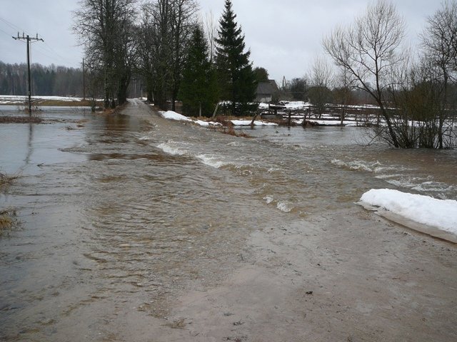 Gājēju un autobraucēju uzmanībai – applūdis ceļš Allažu pagastā!