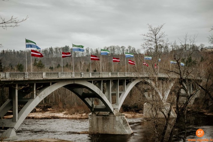 Savukārt Siguldā uz Gaujas tilta līdztekus Latvijas valsts karogiem tiks izkarināti arī lībiešu karogi, kuri tiltu rotās līdz aprīļa beigām.