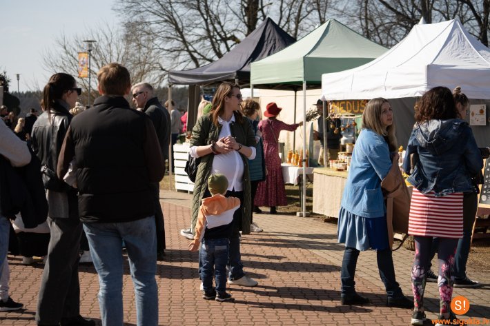 Svētku laukumu ieskandināsim 30. martā plkst. 13.00 ar “Mūsu Bio tirgus” plašo piedāvājumu no bioloģiski sertificētām zemnieku saimniecībām – dārzeņus, jaunos zaļumus, žāvētu gaļu, zivis, Latvijas ogu un augļu produkciju, dažādus konservējumus, sieru, maizi, medu, kūciņas un našķus. Tirgum pievienosies arī zīmola “Radīts Siguldā” vietējie ražotāji “Zilver”, “Cremon”, “Siguldas medus”, “Sortus”. Plašā pulkā arī amatnieki un vietējie ražotāji ar apģērbiem, rotām, koka izstrādājumiem, pinumiem, interjera priekšmetiem un kosmētiku.