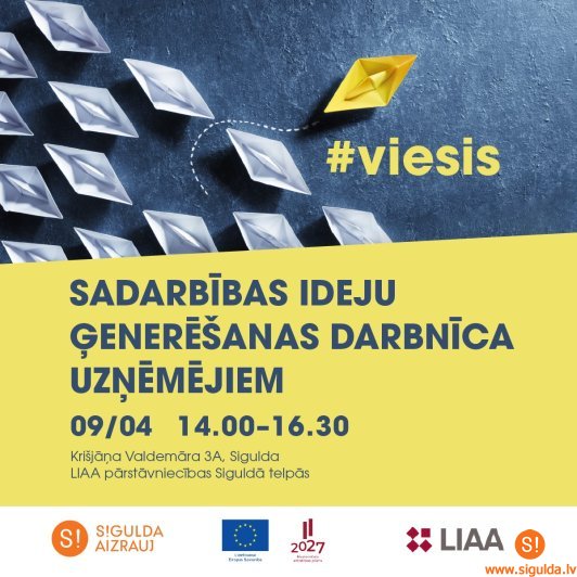 Lai kopīgi rastu iespējamos sadarbības formātus Tūrisma veicināšanai Siguldas novadā, otrdien, 9. aprīlī, no plkst. 14.00 līdz 16.30 Siguldas novada Attīstības aģentūra kopā ar Latvijas Investīciju un attīstības aģentūras (LIAA) pārstāvniecību Siguldā aicina uz uzņēmēju tikšanos – darbnīcu #viesis “Sadarbības ideju ģenerēšanas darbnīca uzņēmējiem” Krišjāņa Valdemāra ielā 3, LIAA pārstāvniecības Siguldā telpās.