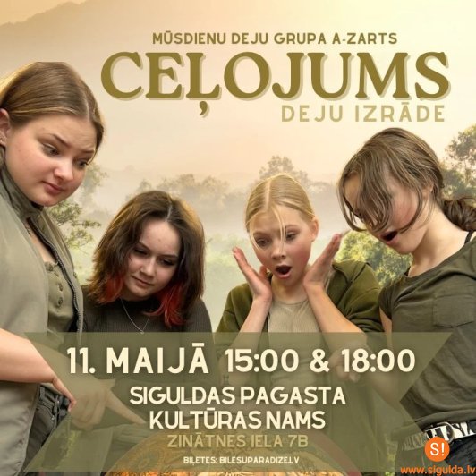 Sestdien, 11. maijā, Siguldas pagasta Kultūras namā plkst. 15.00 un 18.00 notiks mūsdienu deju grupas “A-Zarts” koncerts – deju izrāde “Ceļojums”.