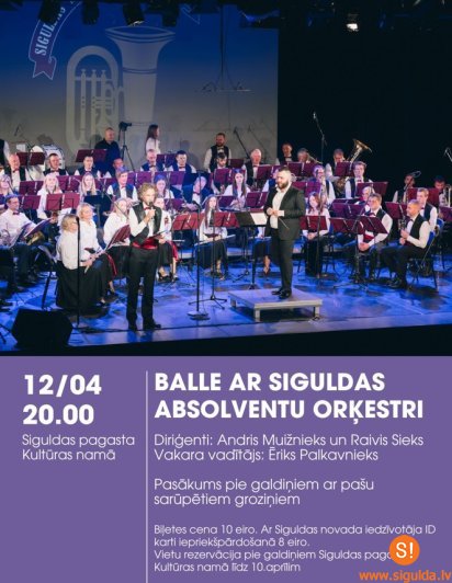 Piektdien, 12. aprīlī, plkst. 20.00 Siguldas pagasta Kultūras nams aicina uz balli – groziņvakaru ar Siguldas Absolventu orķestri. Vakara vadītājs – Ēriks Palkavnieks. Diriģenti: Andris Muižnieks un Raivis Sieks.