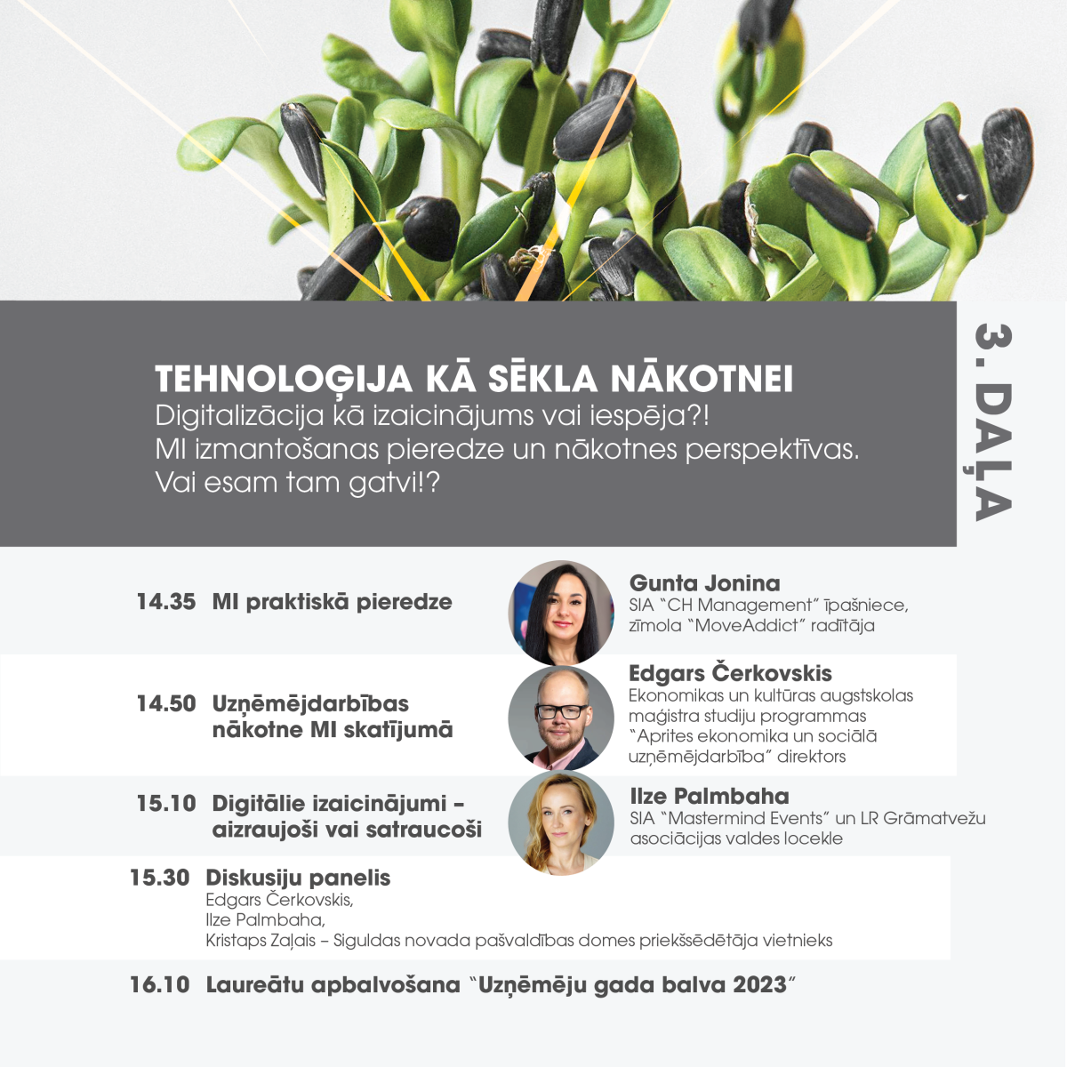 - “Tehnoloģijas kā sēkla nākotnei” – digitalizācija kā izaicinājums vai iespēja? MI izmantošanas pieredze un nākotnes perspektīvas – vai esam tam gatavi?