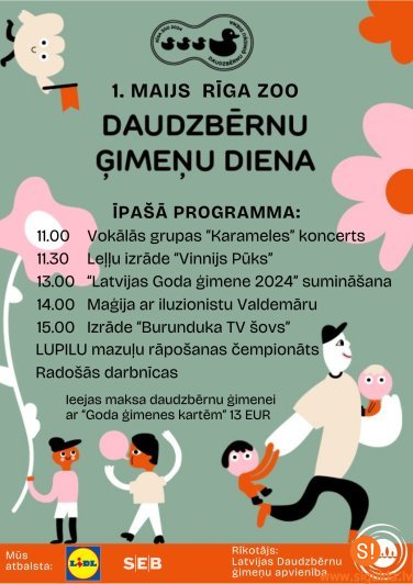 1. maijā visām daudzbērnu ģimenēm, uzrādot apliecību “Goda ģimene”, ieejas maksa būs 13 eiro visai ģimenei.