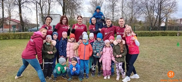 Pirmsskolas izglītības iestādes “Pīlādzītis” audzēkņi pulcējās savā pagalmā, lai atzīmētu šo dienu ar sportisku rītu, kas ietvēra gan vingrojumu kompleksus, gan stafetes, beidzot ar kopīgu vēlējumu sūtīšanu Latvijas sportistiem.