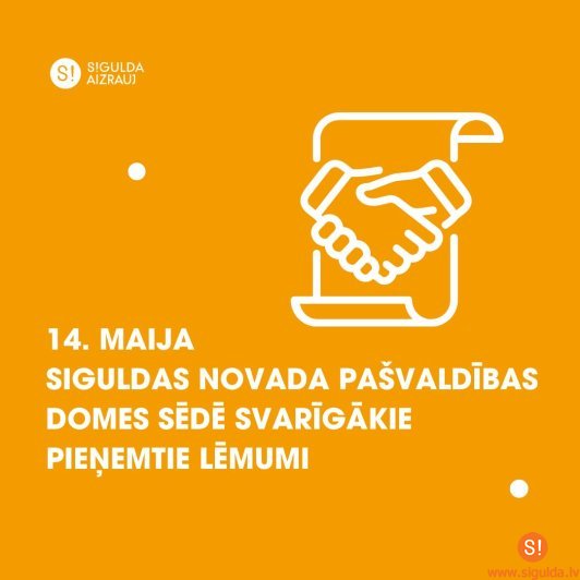 Otrdien, 14. maijā, norisinājās Siguldas novada pašvaldības domes sēde, kurā izskatīti deviņi lēmumprojekti; būtiskākie no pieņemtajiem lēmumiem apkopoti šajā rakstā. Plašāka informācija par sēdes norisi un lēmumiem pieejama pašvaldības tīmekļa vietnes sadaļā “Domes sēdes”.
