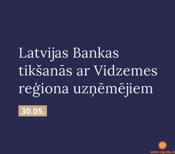 Latvijas Banka aicina Vidzemes reģiona uzņēmējus, pašvaldību vadītājus un uzņēmējdarbības un attīstības plānošanas speciālistus uz tikšanos, lai pārrunātu ar tautsaimniecības izaugsmi saistītos jautājumus un finanšu pakalpojumu pieejamību reģionā, tostarp situāciju kreditēšanā. Tikšanās notiks 30. maijā plkst. 10.00 “Vidzemes koncertzāles” izstāžu zālē Cēsīs, Raunas ielā 12.