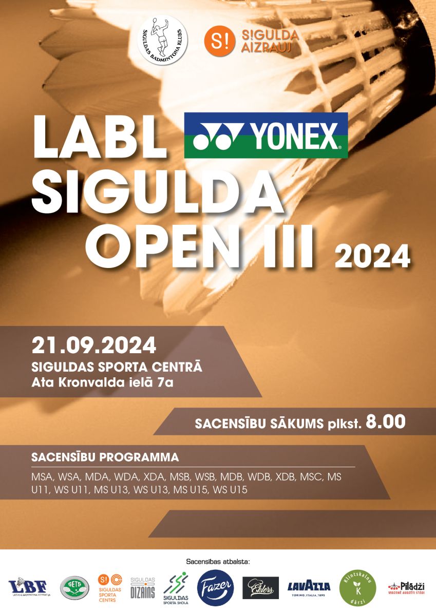 Nedēļas nogalē, 21. septembrī, no plkst. 8.00 Siguldas Sporta centrā notiks tradicionālās “Sigulda Open” sacensības badmintonā. Tajās dalību pieteikuši vairāk nekā 120 spēlētāju no Igaunijas, Indijas, Latvijas un Polijas.