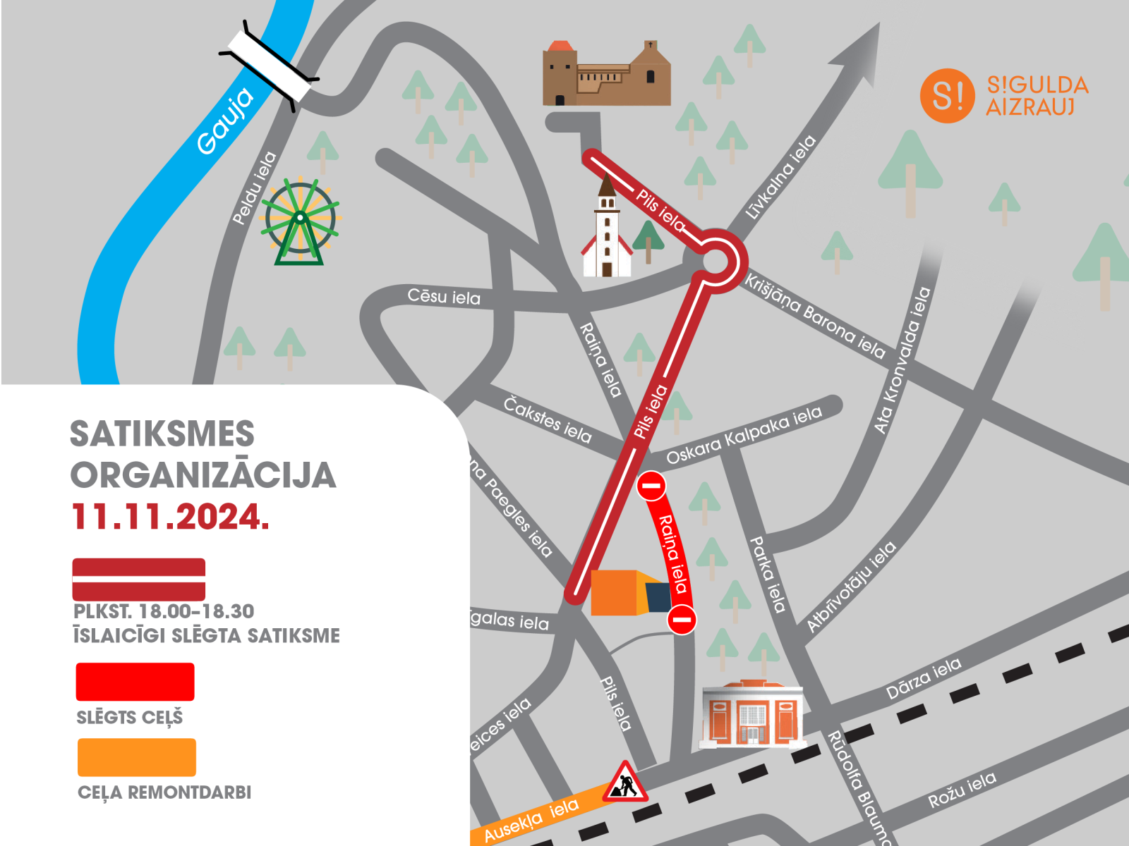 11. novembrī plkst. 18.00 vienosimies lāpu gājienā, kas sāksies pie kultūras centra “Siguldas devons” un virzīsies pa Pils ielu līdz Siguldas Jaunās pils dārzam. Ņemot vērā lāpu gājiena norisi Siguldā, no plkst. 18.00 līdz 18.30 tiks īslaicīgi slēgta satiksme Pils ielā (no kultūras centra “Siguldas devons” līdz Siguldas pils kvartālam). Pēc lāpu gājiena satiksme būs pilnībā atjaunota.