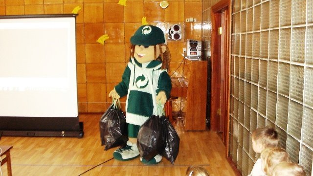 Bērni noskatījās izglītojošu filmiņu, kurā Rūķis un Punktuālis bērniem saprotamā valodā stāstīja par videi draudzīgu dzīvošanu un atkritumu šķirošanu.