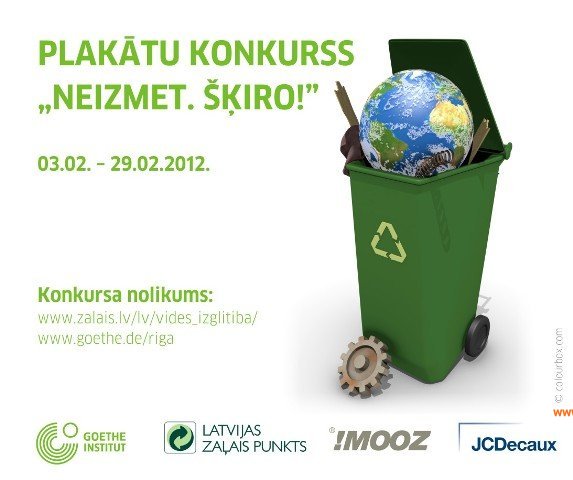 Lai pievērstu jauniešus saprātīgai dabas resursu izmantošanai un ilgtspējīgai attieksmei pret mūsu planētu, Latvijas Zaļais punkts, vides reklāmas operators JCDecaux Latvija, reklāmas aģentūra MOOZ, kā arī Gētes institūts Rīgā organizē plakātu konkursu Latvijas jauniešiem „Neizmet. Šķiro!”. Konkursa darbi tiks gaidīti līdz februāra beigām, marta vidū iesūtītie plakāti būs apskatāmi un novērtējami www.goethe.de/riga, bet labākos darbus 2012.gada vasarā izstādīs vides reklāmas stendos dažādās Latvijas pilsētās.