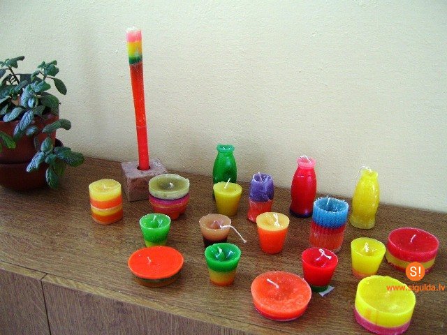 Nedēļas nogalē lējām sveces, izmantojot dažādu formu traukus, veidojām formas no kartona. Iekrāsojām parafīnu dažādos toņos, kurus izmantojām krāsainu sveču veidošanā. Patīkami pārsteigumi sagaidīja katru, kas pēc sveces sacietēšanas atbrīvoja to no formas. Kāda gan krāsu daudzveidība atklājās! Pašiem prieks un gandarījums par paveikto darbu!
