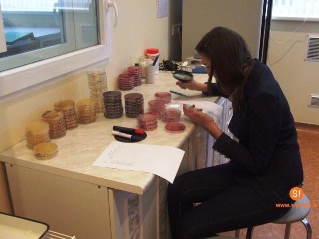Veselības zinātnes sekcijā ar darbu „Gaisa mikrobioloģiskais piesārņojums Siguldas Valsts ģimnāzijā” uzstājās un 1.vietu ieguva 11.d klases skolnieces Zane Ozola un Sandija Skrastiņa. Meitenes veica vairākus eksperimentus, lai noskaidrotu, kuru skolas telpu gaisā ir vislielākais baktēriju un pelējuma sēņu piesārņojums, kā arī izstrādāja ieteikumus skolas gaisa kvalitātes uzlabošanai. „Mēs izsakām pateicību Biotehnoloģijas un veterinārmedicīnas institūta „Sigra” Mikrobioloģijas un bioķīmijas laboratorijas vadītājai Inārai Konošonokai par atbalstu darba izstrādē”, saka darba vadītāja, Siguldas VĢ bioloģijas skolotāja Līga Sausiņa.